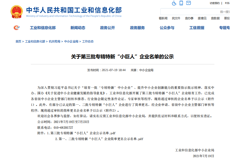 7月19日,工業(yè)和信息化部公布了第三批專精特新“小巨人”企業(yè)名單,共有2930家企業(yè)入選,武漢光谷卓越科技股份有限公司榜上有名!