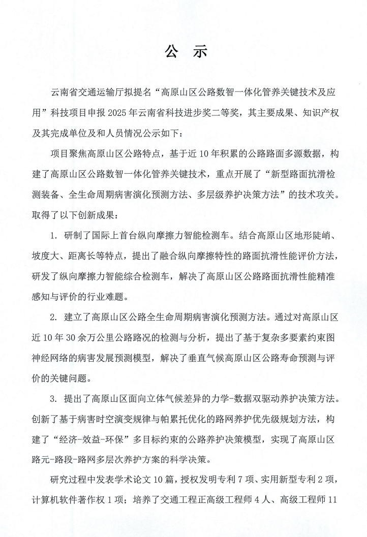 “高原山區(qū)公路數(shù)智一體化管養(yǎng)關鍵技術及應用”科技項目公示