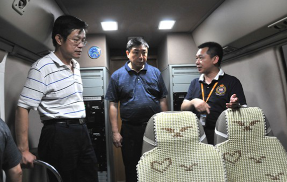 圖2:楊躍承副主任(中)檢測車內(nèi)參觀