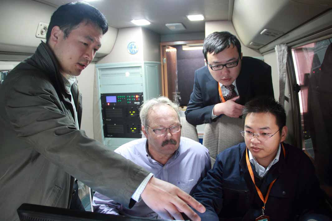 ????2012年11月14日上午9時,加拿大瑞爾森大學(Ryerson?University)測繪工程、土木工程系教授MICHAEL?ALASTAIR?CHAPMAN(以下簡稱邁克教授)來我公司參觀交流。邁克教授在卓越科技董事長曹民先生、首席技術顧問毛慶洲博士等人的陪同下參觀了卓越科技自主研發(fā)的智能道路檢測系統(tǒng)。